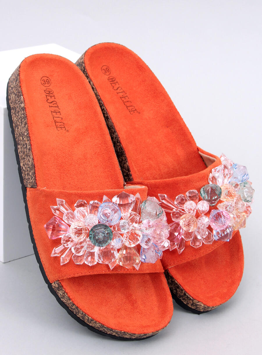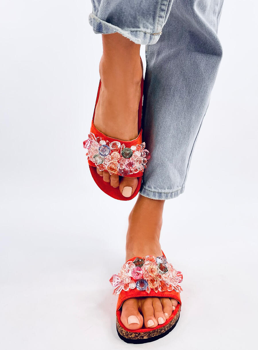 Ladies Cork Sandals Multicoloured Design - Orange