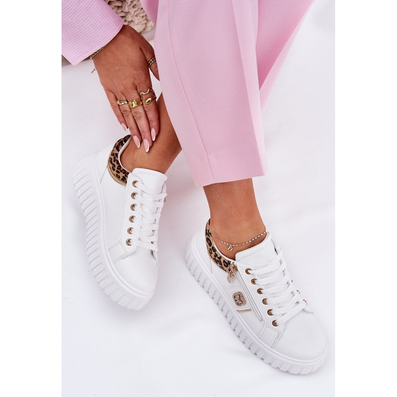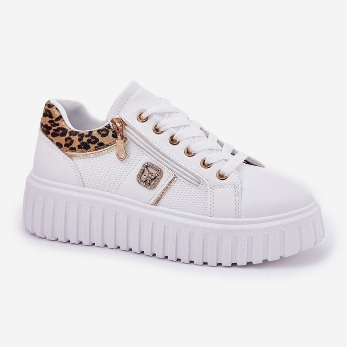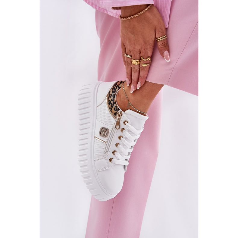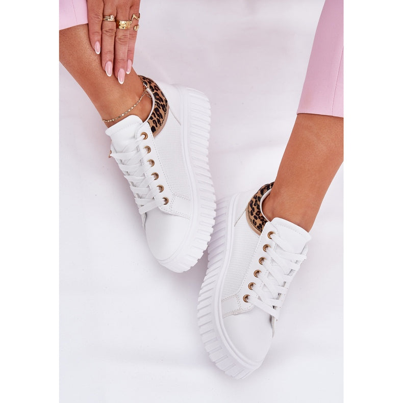 NEW Stylish White Trainers Leopard Print
