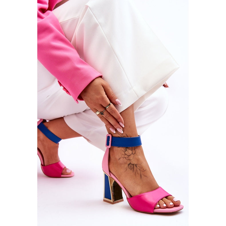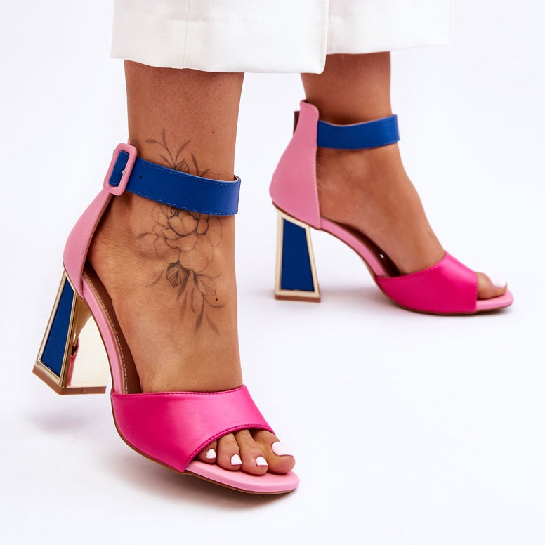 NEW Jessica Pink 'N' Blue Block Heel Peep Toe Sandals
