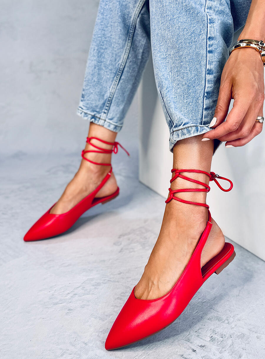 Woman Red Ballerina Shoes with Open Heel
