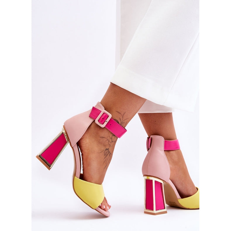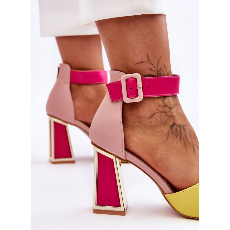 Fastened around the ankle with an adjustable strap with a buckle with a two-tone effect yellow and pink.