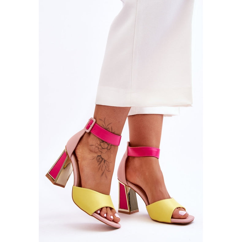 NEW Jessica Yellow 'N' Pink Block Heel Peep Toe Sandals